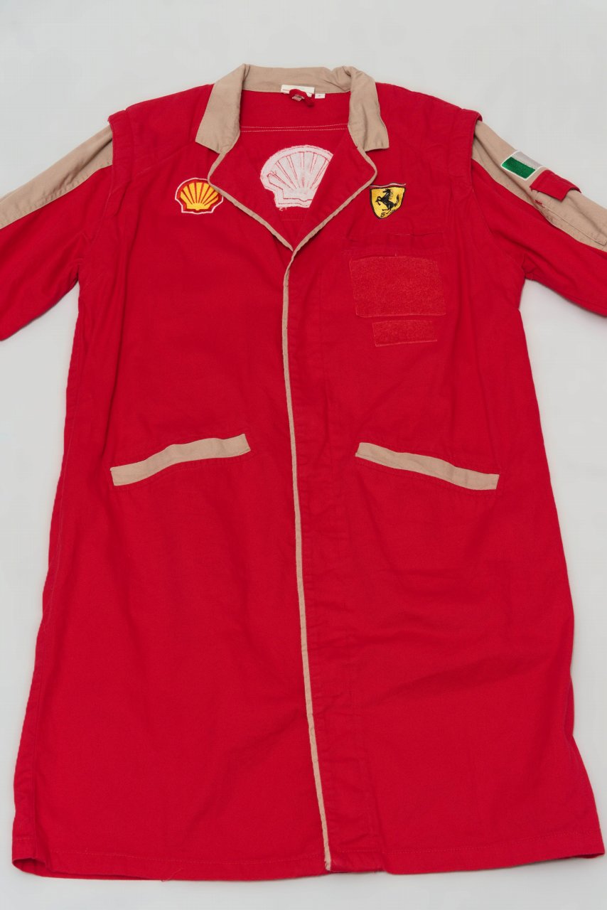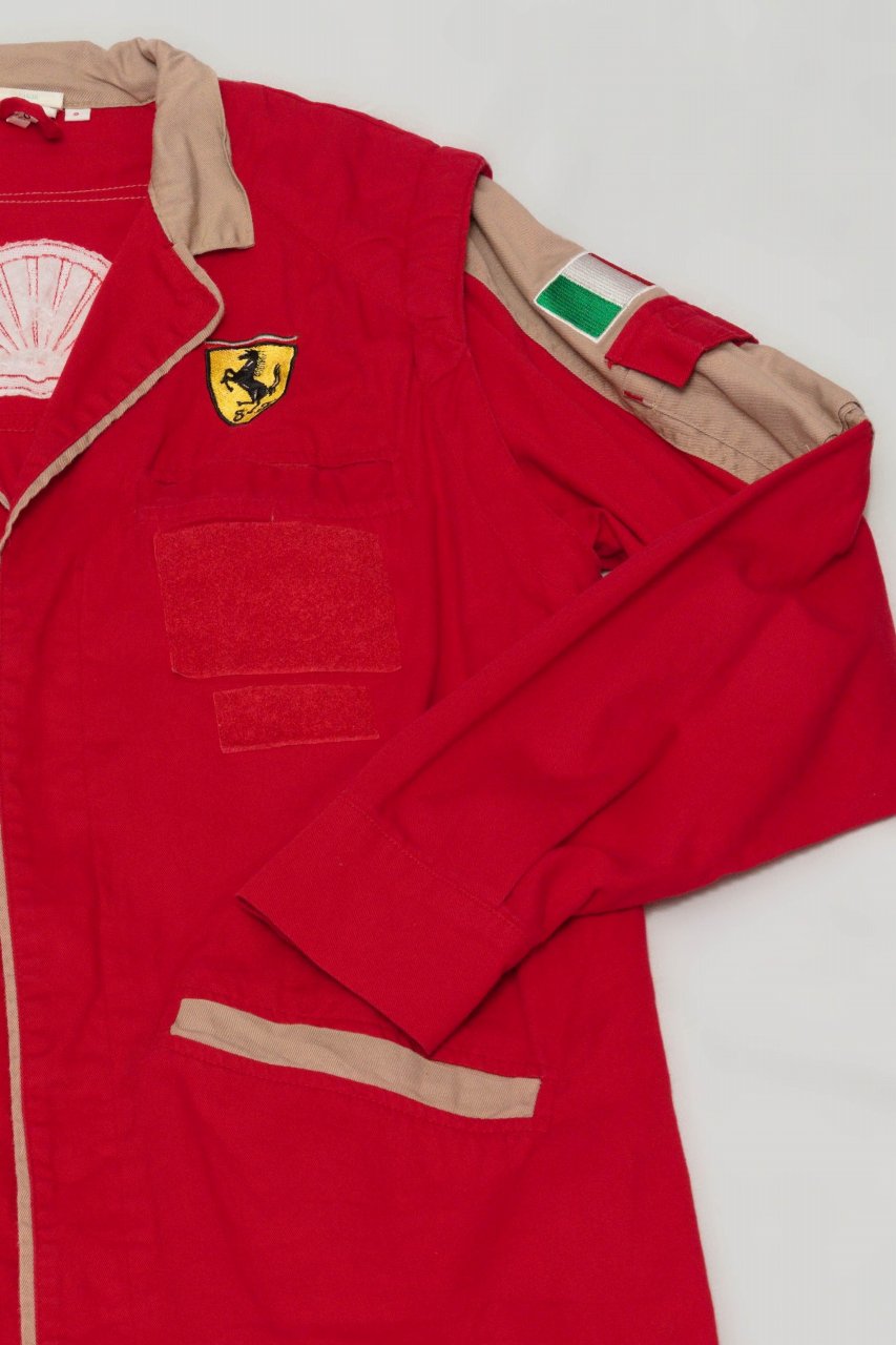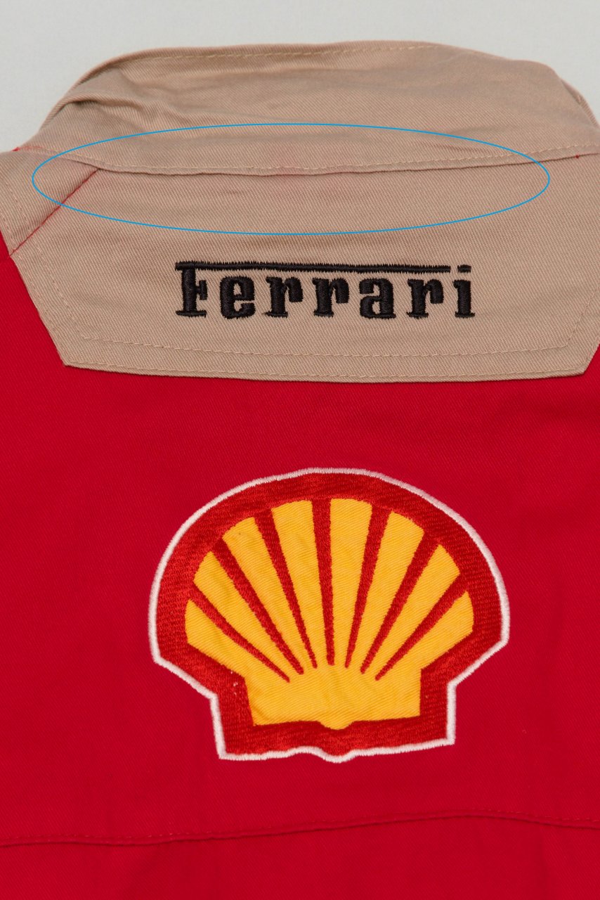 Shellのロゴマークとイタリア国旗があるのでレーシングチームで使われていたモノだと思います。FerrariがShellとスポンサー契約をしたのが1996年頃、タグに「99」と書かれているのでその頃の年代のモノかと推測します。